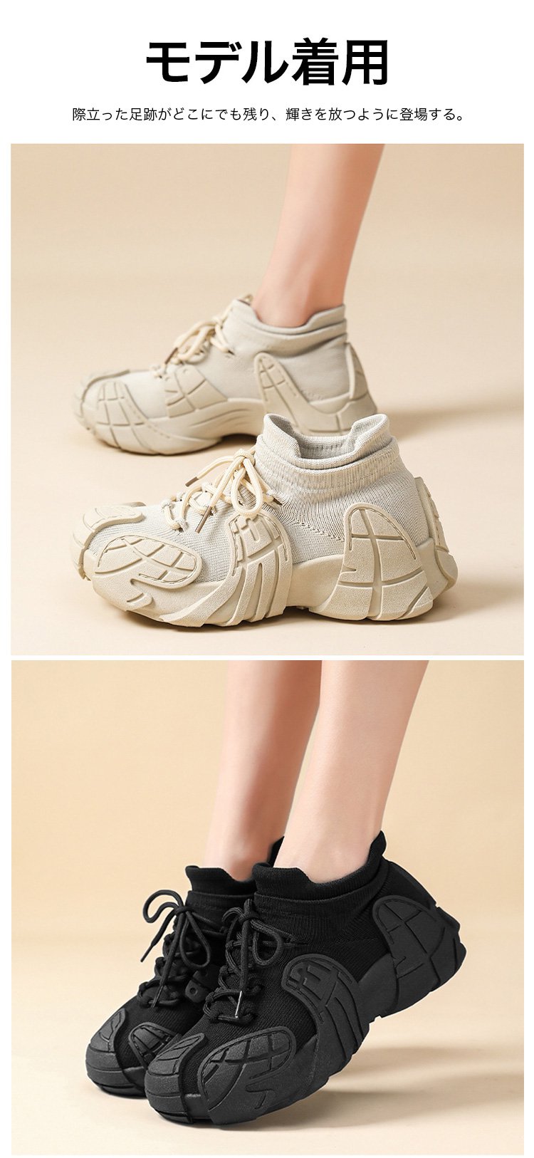 スタイリッシュなレディース厚底スニーカー着用イメージ